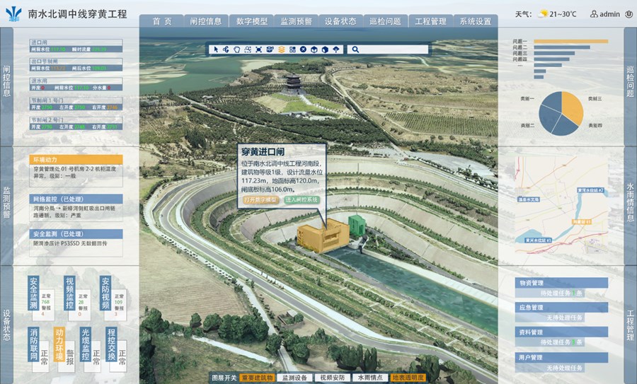 惠南莊泵站、穿黃工程運維管理系統(實現基于BIM模型和實景模型的監測監控設備狀態信息實時查詢,實現工程的運維管理)