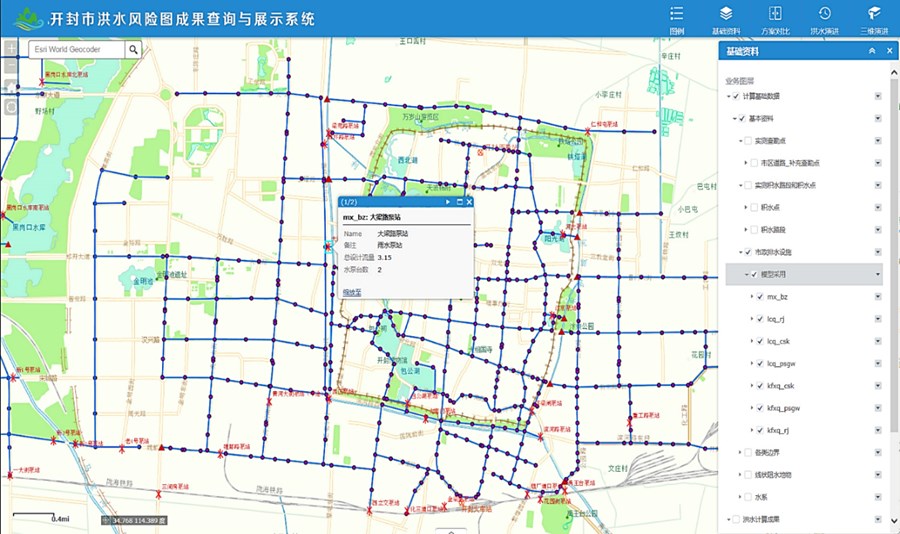 開封城市洪水風險圖系統(基于洪水風險圖成果實現開封市洪水風險信息的實時在線查詢)