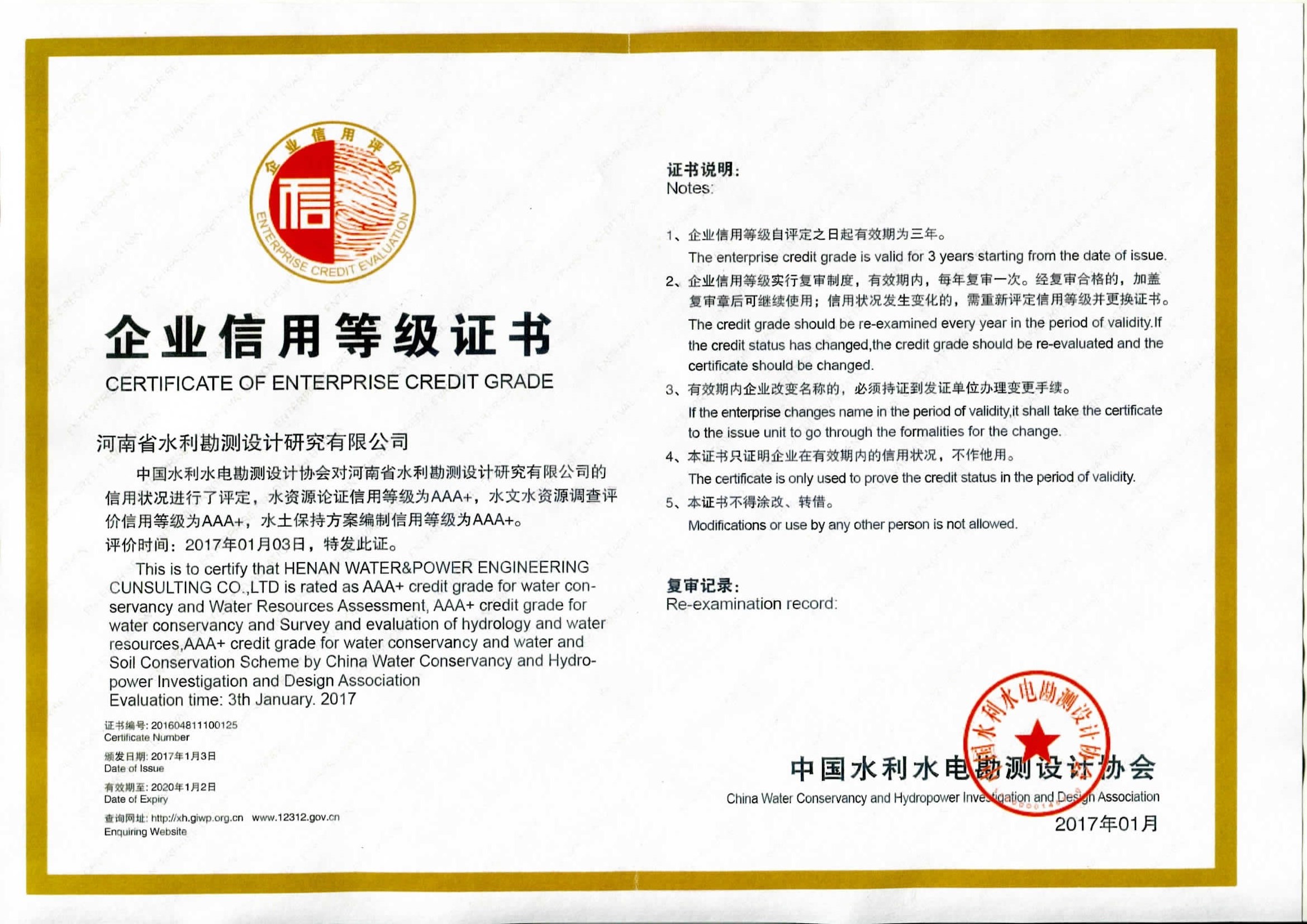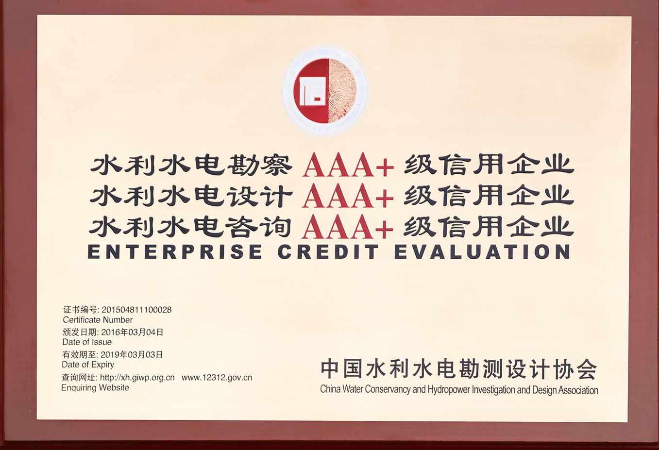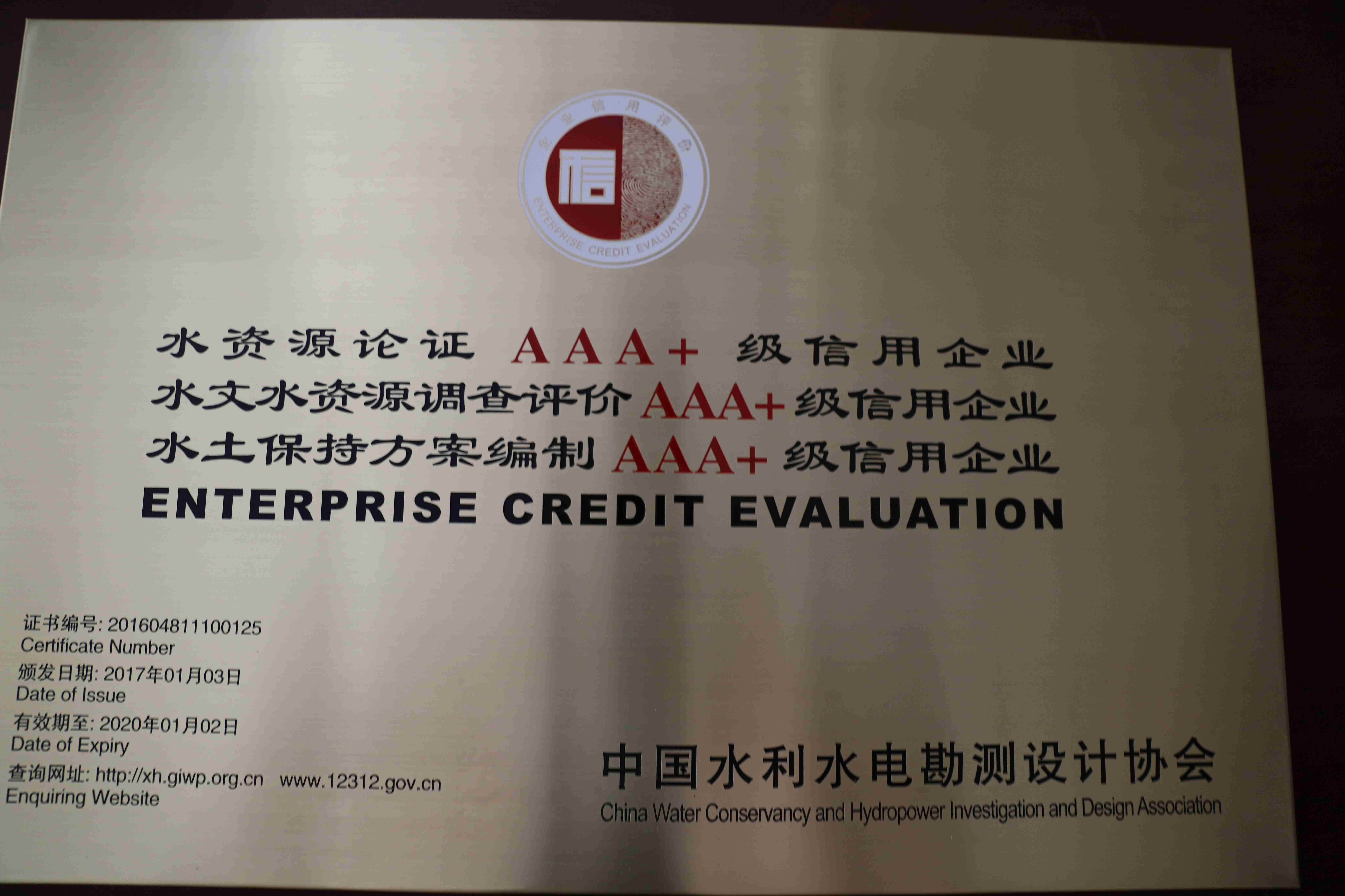 水利水電勘察設(shè)計咨詢3A+級信用企