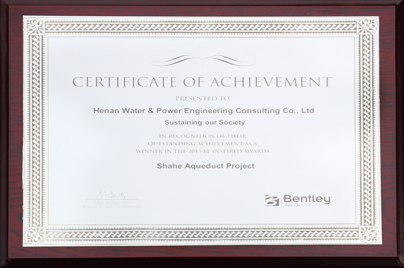 2013年度Be特別榮譽(yù)獎 南水北調(diào)沙