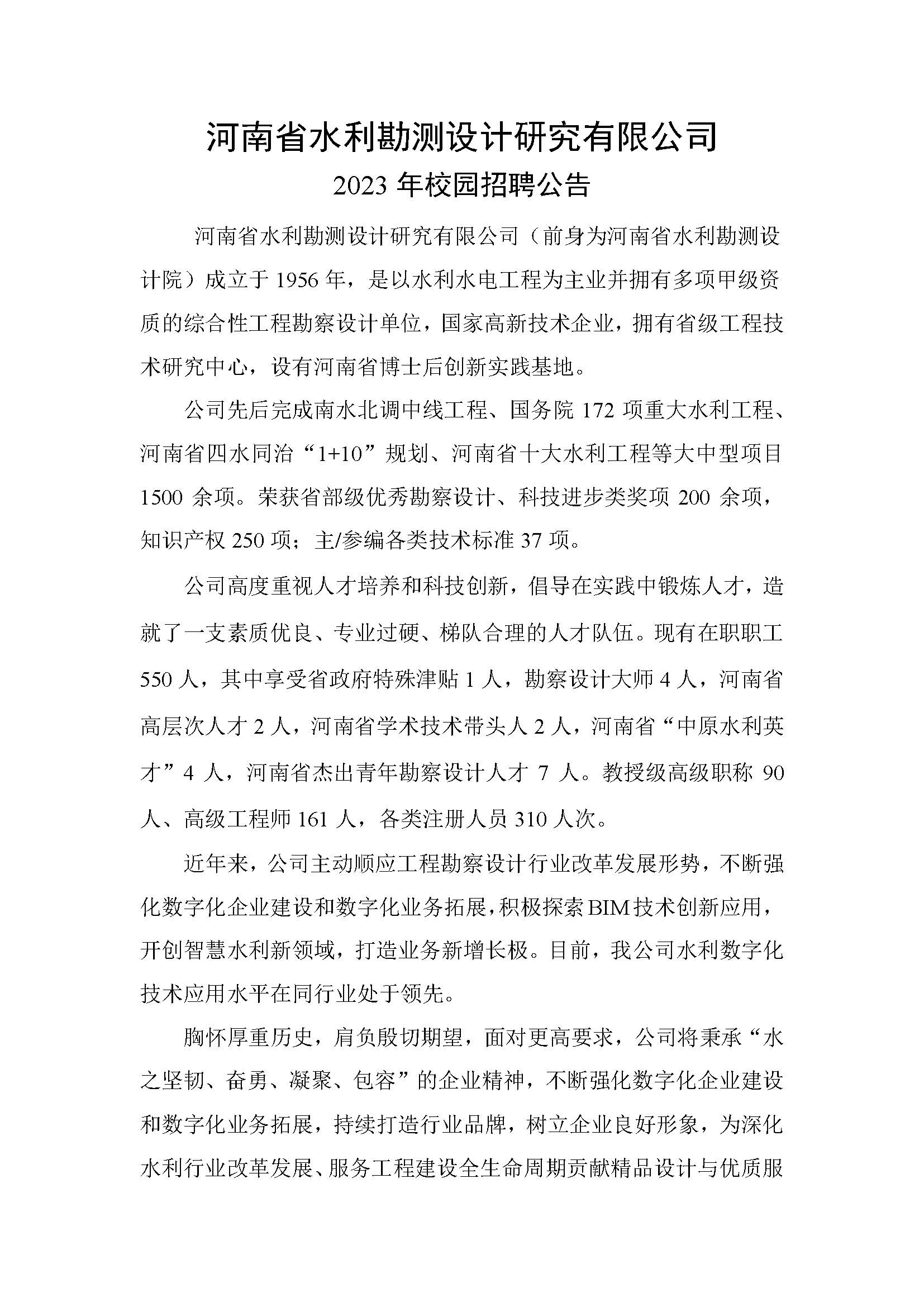 附件1:河南省水利勘測設計研究有限公司2023年校園招聘計劃.pdf