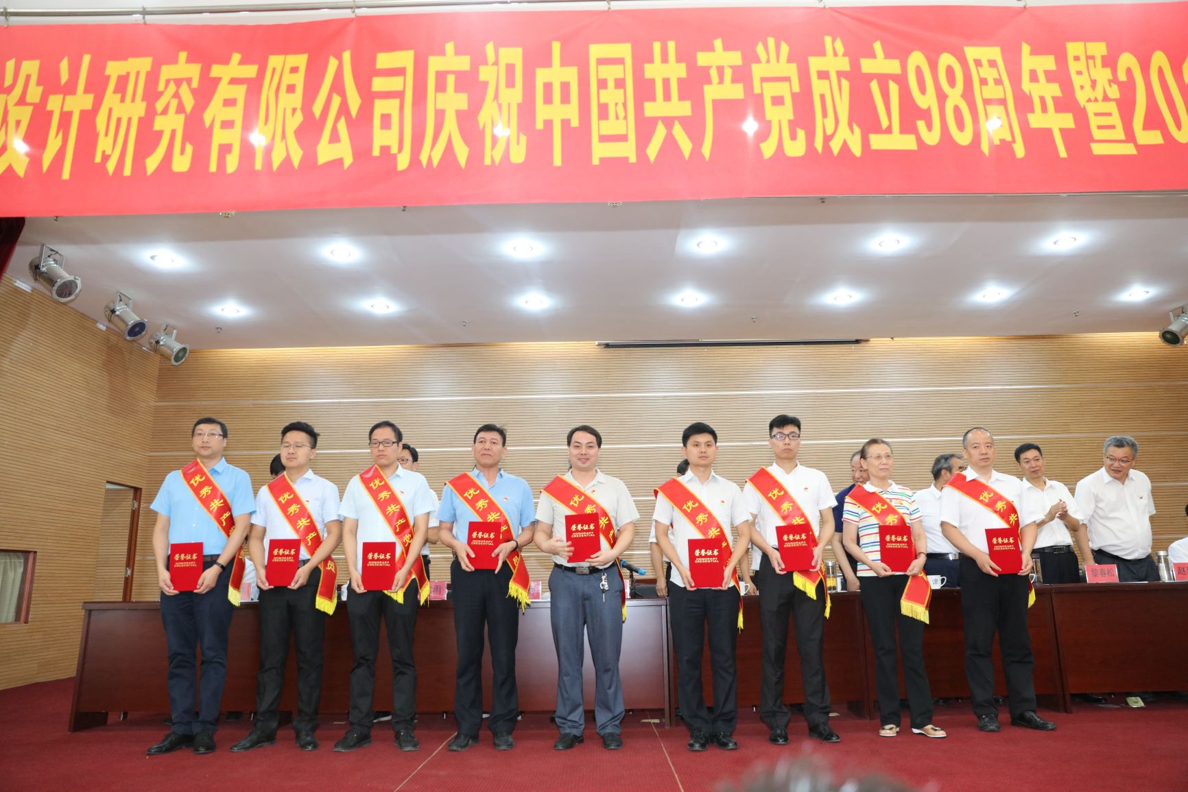 會議由公司黨委副書記、勘測公司總支書記、董事長趙健倉同志主持,黨委委員、設計公司總經理朱太山同志宣讀了公司黨委表彰決定。楊華軍等41名優秀黨員、何桂平等2名優秀黨務工作者及工程設計一院黨支部等5個先進黨支部代表身披綬帶上臺領取了榮譽證書、獎牌;11名新黨員面對黨旗莊嚴宣誓;設計公司耿昕、勘測公司的周子東作為優秀黨員代表在會上進行典型發言;設計公司申黎平、勘測公司張慶功作為新黨員代表進行發言。