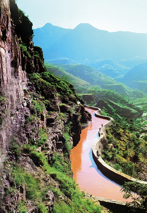 林縣人民在缺少糧食,飯都吃不飽的三年困難時期,在極度艱苦的條件下,累計投入20多萬民工,一錘一釬,頂酷暑、戰嚴寒,經過10年奮戰,在太行山腰開鑿了干、支、斗渠1500公里的“人工天河”紅旗渠,把濁漳河水引入林縣,有效灌溉面積54萬畝,形成能引、能蓄、能灌、能排及綜合利用的水利網,成為全國大型灌區之一,結束了水缺貴如油的歷史,為山區經濟的振興奠定了堅實的基礎,開創了水利工程建設之最,曾被國際友人譽為“世界第八大奇跡”。林縣人民用血汗和生命培育造就了“自力更生、艱苦奮斗、團結協作、無私奉獻”的紅旗渠精神,激勵我們全力做好工作。