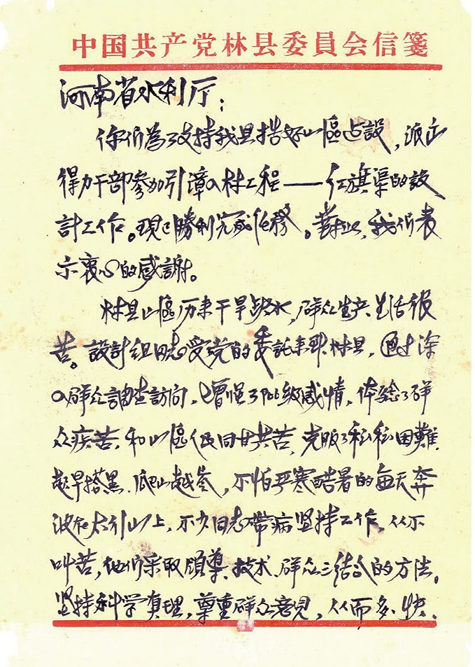 黨的二十大報告指出,科技是第一生產力,人才是第一資源,創新是第一驅動力。提出加快建設網絡強國,數字中國。紅旗渠是水利工程的世界之最,本身就是創新的代名詞。老一輩豫水設計人在紅旗渠設計過程中,利用當時的設備、設施條件,開動腦筋,在優化設計、渠線比選、規模確定等方面創新性的工作,為提前、高質量完成設計工作起到了重要作用,贏得林縣人民委員會的高度贊揚。