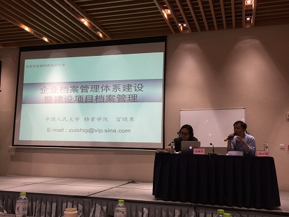 接著,國家檔案局特聘專家、中國人民大學檔案學院教授宮曉東主講。宮教授分別從“企事業單位檔案管理體系建設與運行”及“建設項目檔案管理、迎檢驗收”兩個方面進行了詳細的講解。授課內容不僅涵蓋了企事業單位檔案管理規定、文件運行過程的控制與歸檔標準的細化、檔案分類與編號方式的改進、檔案保管期限到期后的再鑒定及檔案工作考核,還涉及到重大建設項目檔案管理規定與標準、工程建設項目檔案工作協調機制、檔案專項驗收的準備工作等。在培訓過程中,宮教授通過深入淺出的講解和大量生動案例的引用,幫助參會人員理解和領會,授課效果良好。