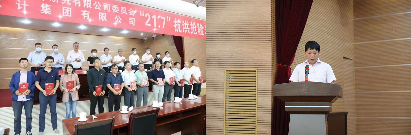大會(huì)現(xiàn)場首先播放了《“豫水設(shè)計(jì)”抗洪搶險(xiǎn)在行動(dòng)》宣傳片。副總經(jīng)理趙廷華宣讀了省水利廳黨組的表揚(yáng)決定,豫水設(shè)計(jì)公司黨委及8名同志受到表揚(yáng);宣讀了豫水設(shè)計(jì)公司黨委和豫水設(shè)計(jì)集團(tuán)對(duì)在抗洪搶險(xiǎn)中表現(xiàn)突出的48名先進(jìn)共產(chǎn)黨員、44名先進(jìn)個(gè)人的表彰決定。大會(huì)對(duì)受表彰的24名代表進(jìn)行了現(xiàn)場頒獎(jiǎng)。工程設(shè)計(jì)二院楊長庚同志、規(guī)劃院盧瑕同志、裕水貿(mào)易公司王勇同志分別代表抗洪一線、后方技術(shù)支持和后勤保障團(tuán)隊(duì)作了典型發(fā)言。