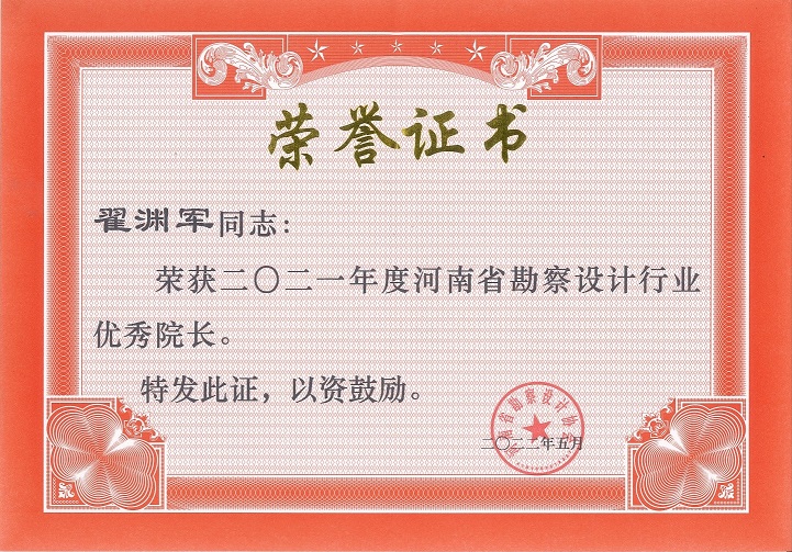 大會(huì)還對(duì)2021年表現(xiàn)優(yōu)秀的勘察設(shè)計(jì)企業(yè)、院長(zhǎng)頒發(fā)了榮譽(yù)證書。公司被評(píng)為2021年度河南省勘察設(shè)計(jì)行業(yè)先進(jìn)企業(yè),翟淵軍董事長(zhǎng)榮獲2021年河南省勘察設(shè)計(jì)行業(yè)優(yōu)秀院長(zhǎng)。