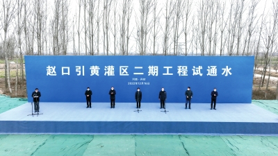 12月16日,趙口引黃灌區二期工程試通水儀式在開封市祥符區范村鄉劉元寨樞紐舉行,河南省人民政府副省長孫運鋒、河南省水利廳黨委書記劉正才等領導出席。豫水設計公司副總經理袁榆梁,趙口引黃灌區二期工程設計代表處梁祥金、劉春征等參加儀式。
