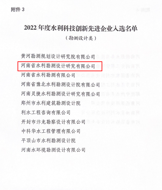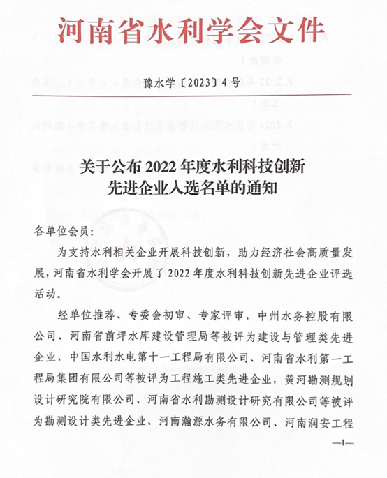 為支持水利企業(yè)開展科技創(chuàng)新,助力經濟社會高質量發(fā)展,河南省水利學會自2022年11月開展了2022年度水利科技創(chuàng)新先進企業(yè)評選活動。經激烈角逐,共有11家企業(yè)入選,豫水設計公司被評為“勘測設計先進企業(yè)”。