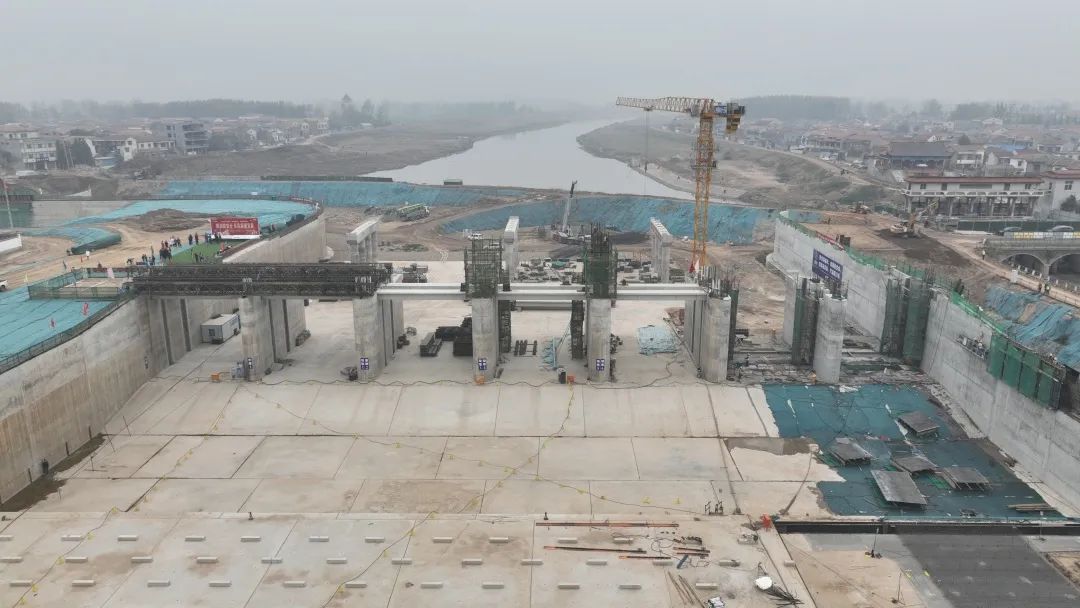 賈魯河綜合治理工程扶溝縣北關閘建設現場(盧漢 攝)