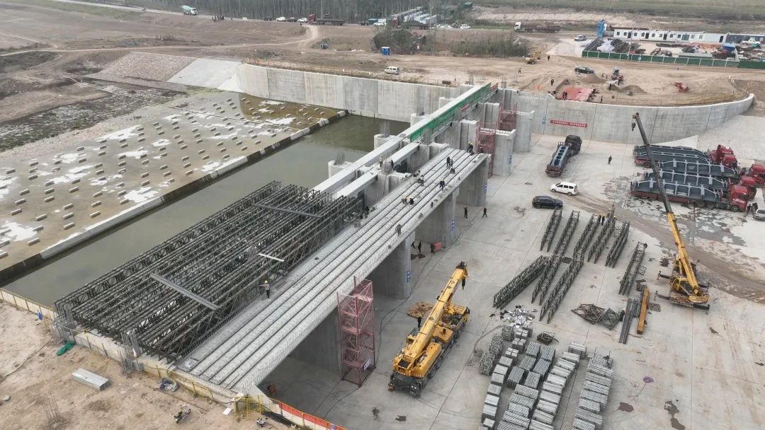 截至11月上旬,河道開挖、疏浚及堤防填筑施工已全部完成,6座攔河閘均已完成閘室底板澆筑,正在進行擋墻及上部結構混凝土施工,其他建筑物施工有序推進,累計完成投資43.95億元,占總投資的59.42%,其中2022年度完成投資38.77億元,占2022年度計劃44.78億元的86.58%。