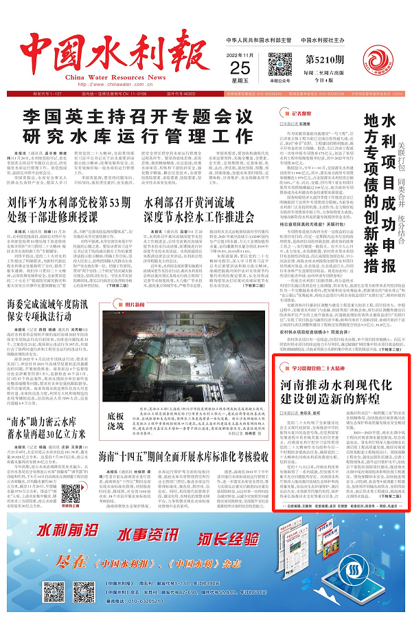 黨的二十大吹響了全面建設(shè)社會主義現(xiàn)代化國家、全面推進中華民族偉大復(fù)興的奮進號角,在黨和國家發(fā)展進程中具有極其重大的歷史意義。河南省水利廳把學(xué)習(xí)宣傳貫徹黨的二十大精神作為當(dāng)前和今后一個時期的首要政治任務(wù),確保黨的二十大精神在河南水利系統(tǒng)落地生根、見到實效。